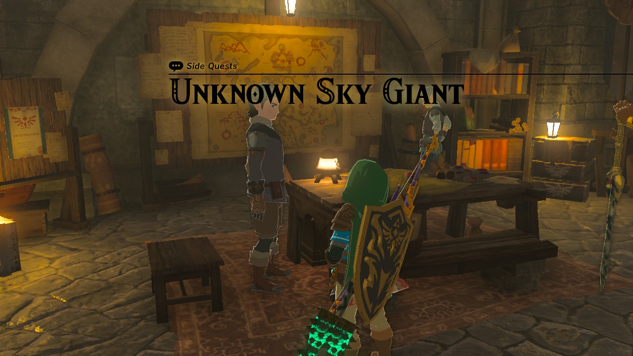 If you have completed WANTED: Molduga, WANTED: Hinox, and WANTED: Stone Talus, you can start this quest by talking to Gralens in the Emergency Shelter in Lookout Landing, and ask him about the unknown sky giant.